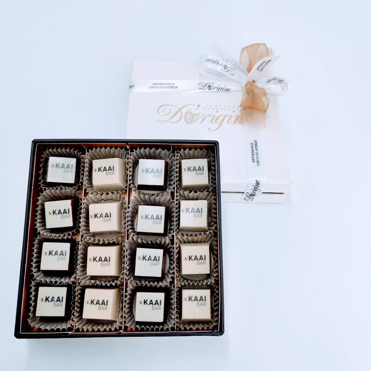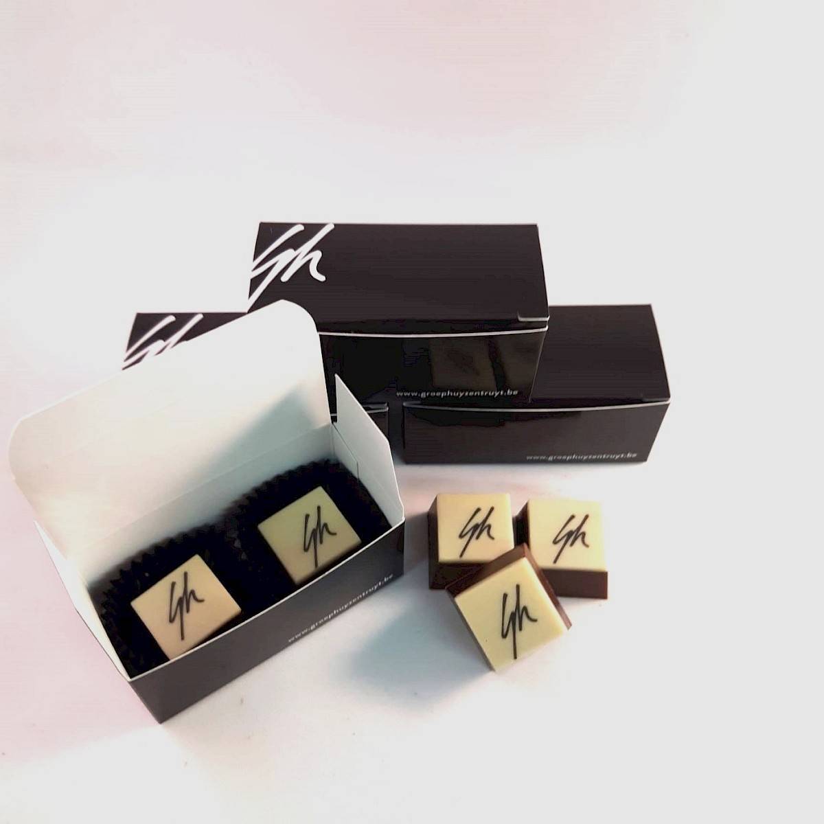 Hier zijn er tal van mogelijkheden, contacteer ons gerust om uw wensen te bespreken. Uw logo kan onder andere bedrukt worden op onze pralines